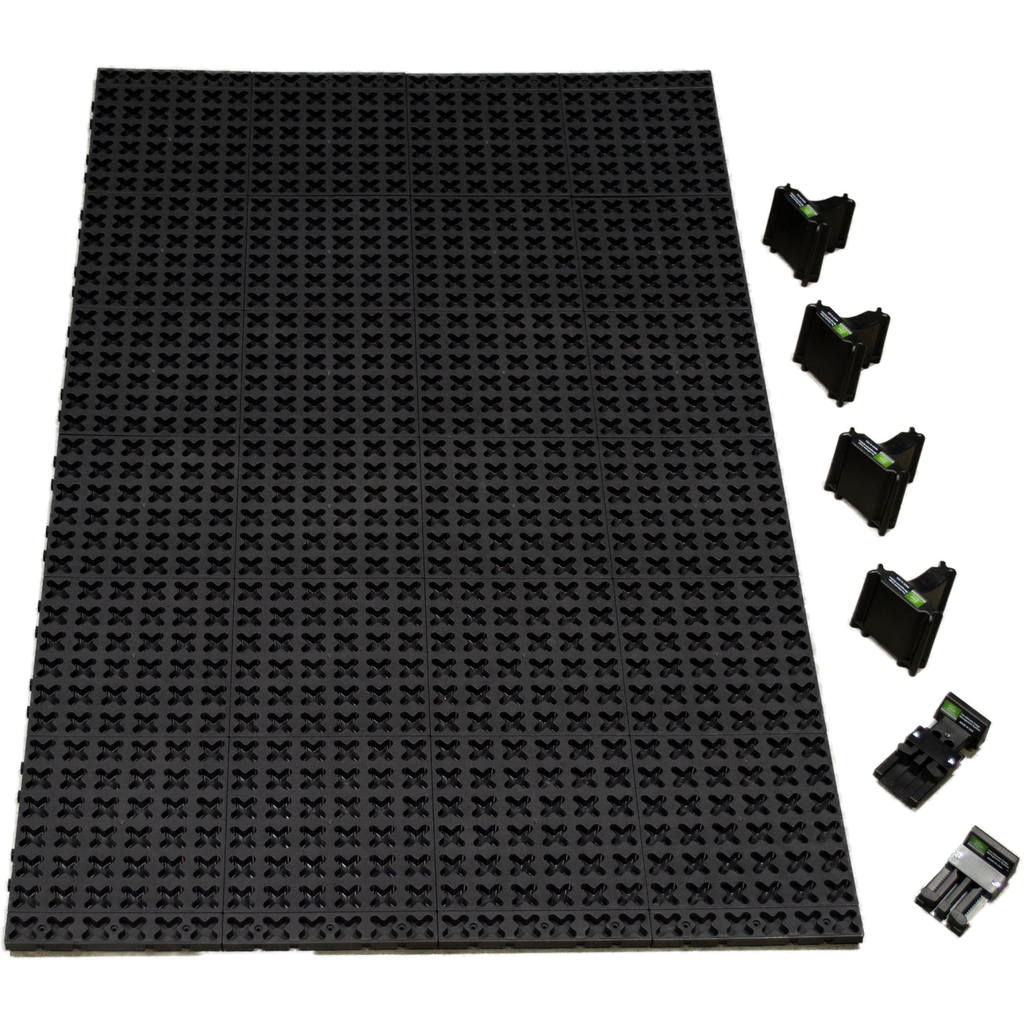Staying between the wheel wells allows you to easily slide the mat in and out of the bed. This cargo management system can easily be modified to your own specifications to accommodate. The blockers simply plug into the mat in any configuration to hold your tools and equipment in place.