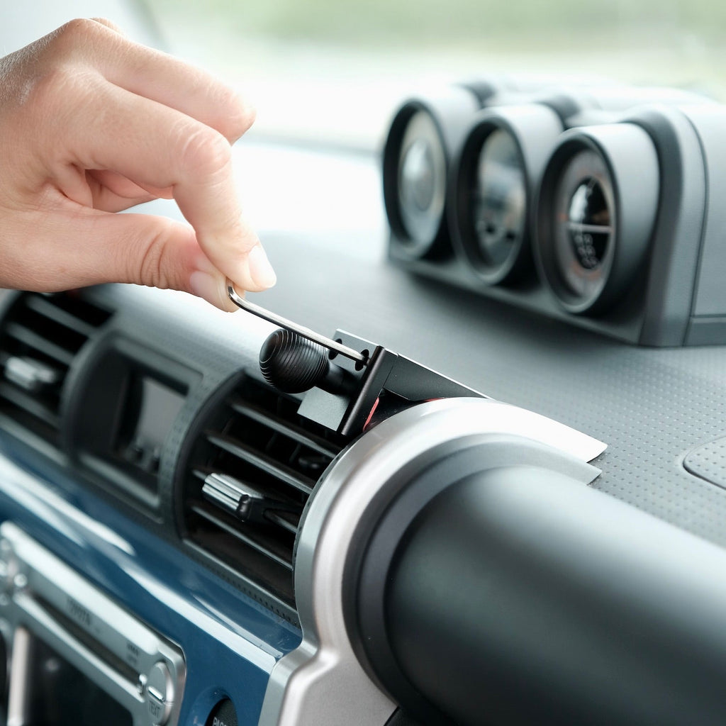 Simple install & clean un-install. Shaped to fit the existing features in your vehicle dashboard for a secure attachment and simple install without vehicle disassembly, drilling or glue in minutes with a provided Allen wrench. Removes easily without marks or any residue thanks to protective rubber liners.