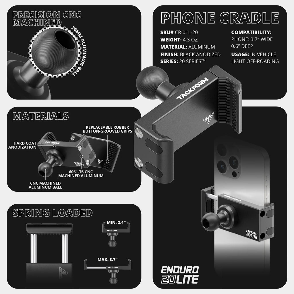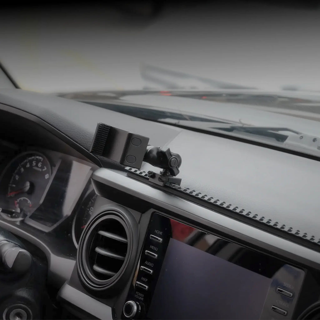 Experience the strongest, most reliable, ALL-METAL dash-mounted phone mount setup for your 3rd Gen Toyota Tacoma (2016-2023). Engineered to meet the demands of both on-and off-road drivers, each Tacoma dash kit is built from high-grade 6061-T6 aluminum and CNC machined for enhanced strength and durability. Using laser scanning technology, our dash brackets are precisely designed to match the complex contours of your dashboard, while the hardcoat anodized finish provides an OEM look and feel, seamlessly blending with your vehicle's interior.