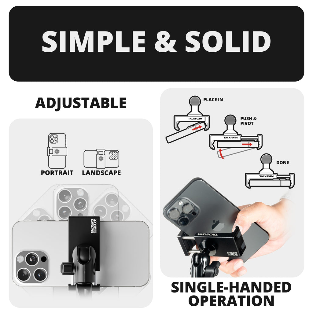 Some dashboard brackets on the market are designed with a short width. The problem with that platform is that they require the use of long arms to place devices in their appropriate position for the driver and passenger. At Tackform, we’ve developed a full-width bracket that is wide enough to accommodate ball mounts at the furthest ends of the bracket. This design allows you to use much shorter arms to mount your devices effectively.