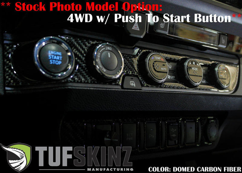 Add a new interior look to your Toyota Tacoma by installing TUFSKINZ Climate Control Accent. These kits add style and protection to your vehicle and are fittingly positioned around the climate control trim with either the 4wd (dial) or 2wd (no dial) and key ignition or push to start.
