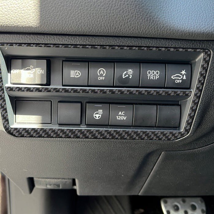 TUFSKINZ Dim Switch Panel Accent Trim pieces are designed to perfectly overlay the surrounding trim of the dim light switches on the far driver side. Prep and installation can simply be completed within 20 minutes.