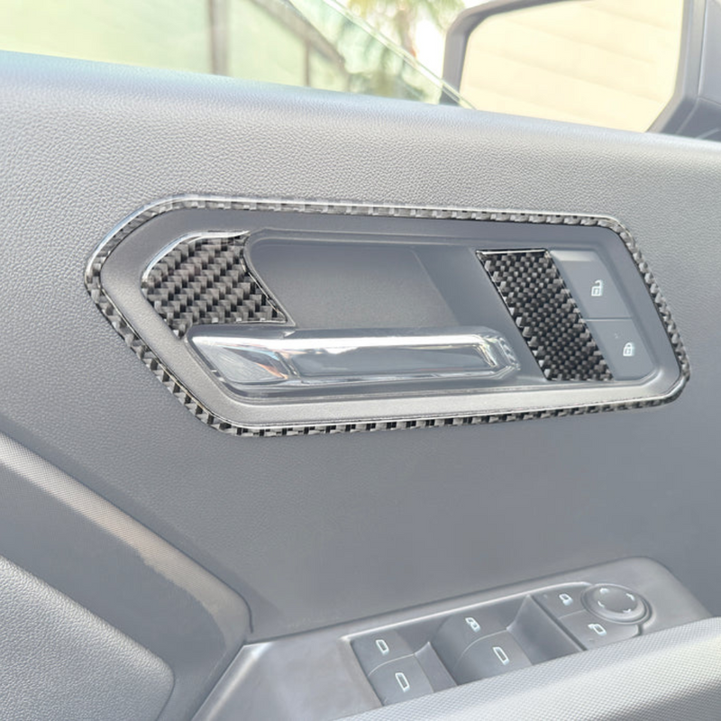 Add a new interior look to your Chevrolet Colorado by installing Tufskinz Door Handle Accent Overlay for Colorado & Canyon (2023-2026). This kit adds style and protection to your vehicle and is fittingly positioned onto the surround trim of the interior door handle.