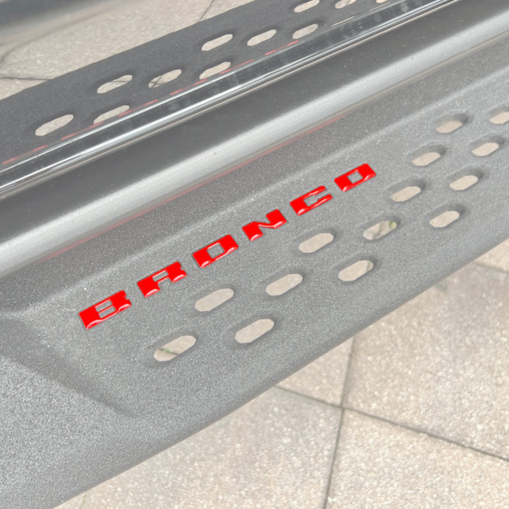 Add a new look to your Bronco by installing TUFSKINZ Running Board Emblem Overlays. This kit features raised and stylish letters that are fittingly positioned on top or inside of the emblem on the OEM running boards.