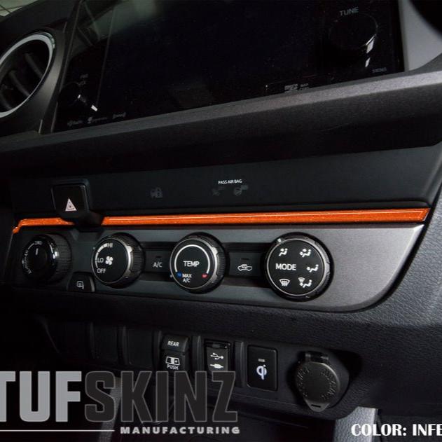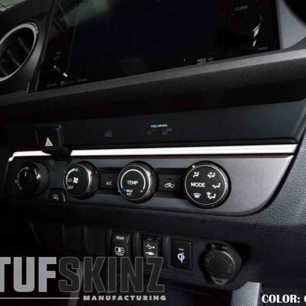 TUFSKINZ Accent Strip Above Climate Control piece is designed to fit over the trim piece of that area. Prep and installation can simply be completed within 5 minutes.