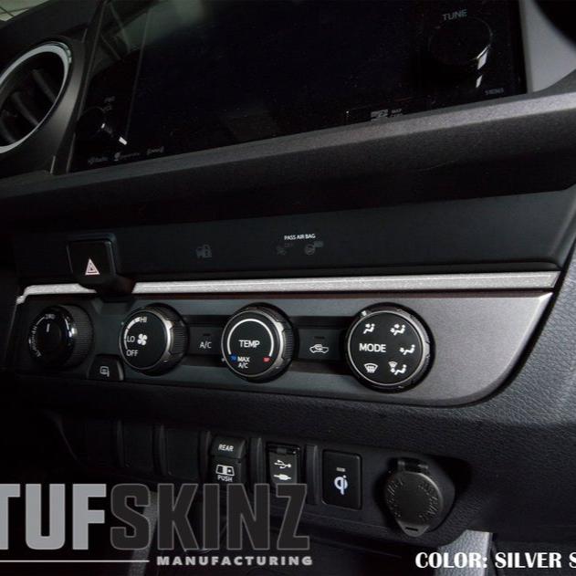 Add a new interior look to your Toyota Tacoma by installing TUFSKINZ Accent Strip Above Climate Control. This kit adds style and protection to your vehicle and is fittingly positioned above the climate controls.