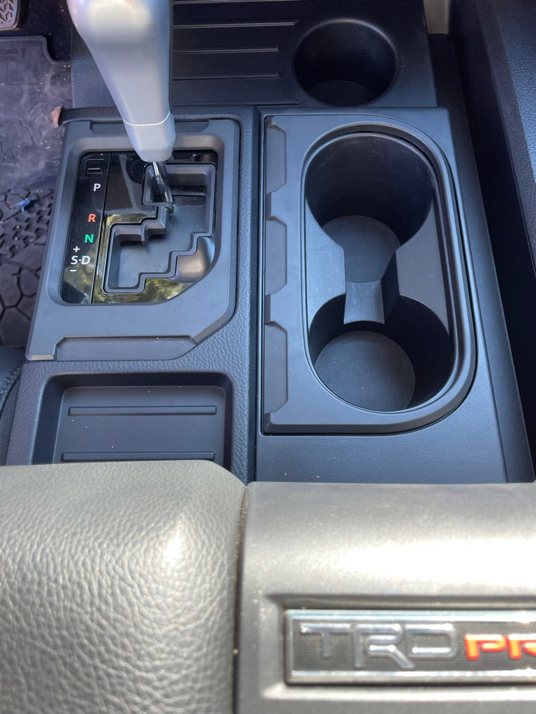 Why did Toyota use so much chrome on the interior?! We may never know, but MESO has the solution. Introducing the Tundra chrome delete kit. This 3 piece kit will completely replace all the chrome on the center console including; Cup Surround, Shift Surround, and Shift Gate. All parts are injection molded for a factory fit and finish. Available in BLACK only.