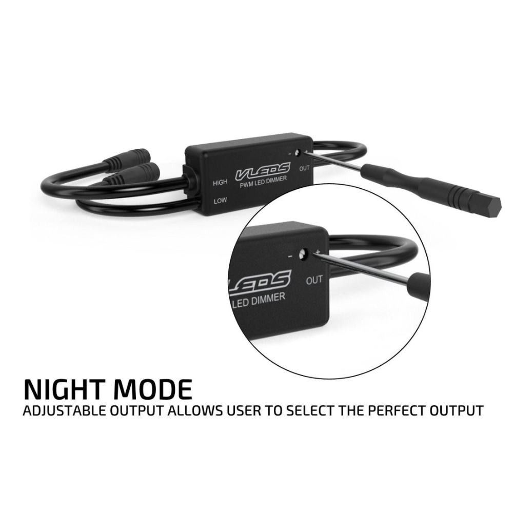 NIGHT MODE: While driving at night, a soft ambient light adds a sense of spaciousness throughout the cabin. If you want it brighter, use the included screwdriver and turn it up to your liking. The output is factory set to approximately 10LM (the lowest setting).