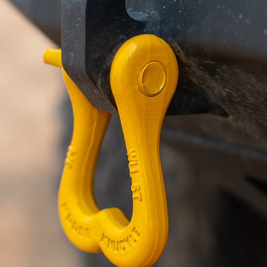 A divider on the inside of the tow shackle doesn't allow a slip knot to slide together making removal easier. This divider also helps with keeping space when two hooks, chains or master links are attached.